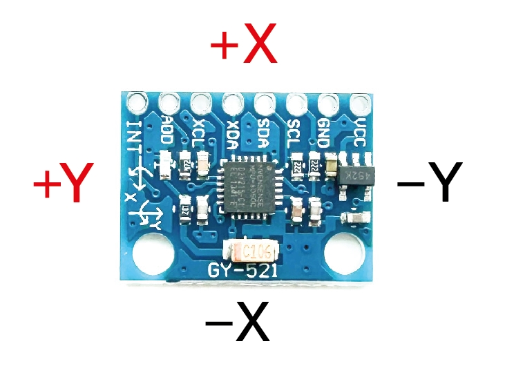 센서보드가 -Y방향으로 기울어져 수직하면 X축 중력가속도 값은 -1에 수렴 (시리얼 모니터 값 0.00, -1.00, 0.00)